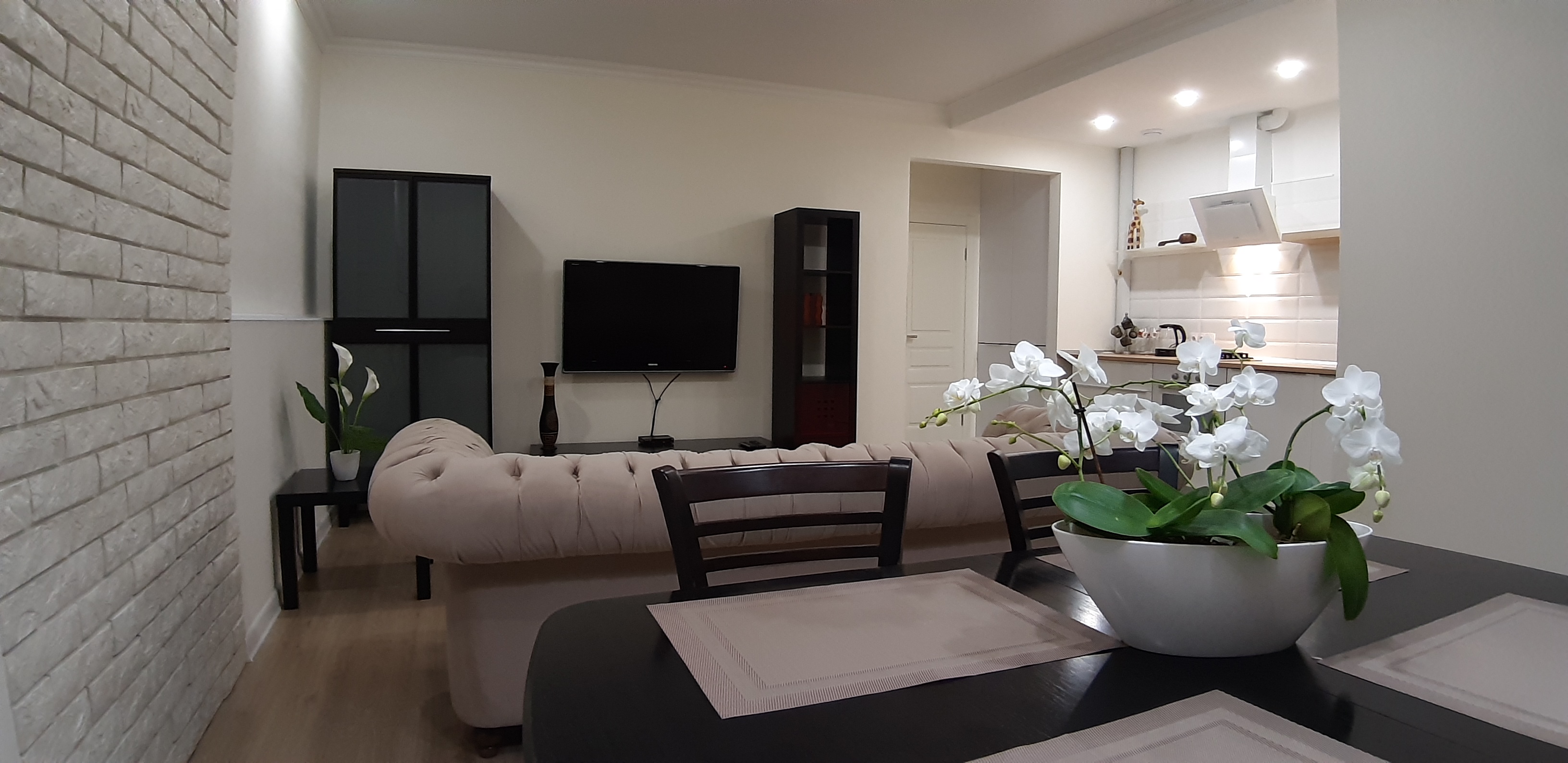 Добро пожаловать в наши просторные двухкомнатные апартаменты! У нас вы найдете уютное и комфортное место для проживания, где есть все необходимое для вашего удобства. Наши апартаменты имеют отдельный вход и включают в себя отдельную спальню, кухню-гостиную и ванная комнату с душем. В спальне удобная кровать king-size и ортопедический матрас. Предоставляем белоснежное постельное белье и полотенца, чтобы вы могли насладиться отличным ночным сном и хорошим отдыхом. Большой шкаф предоставляет удобное место для хранения ваших вещей. Кухня-гостиная оборудована всей необходимой бытовой техникой. Здесь вы найдете плиту, микроволновую печь, холодильник, стиральную машину, чайник, кофеварку и посуду. В гостиной зоне есть удобный диван, телевизор и обеденный стол. Также для вашего удобства мы предлагаем одно парковочное место на закрытой парковке. Выбирая наши двухкомнатные апартаменты, вы получаете прекрасное место для проживания и отдыха.