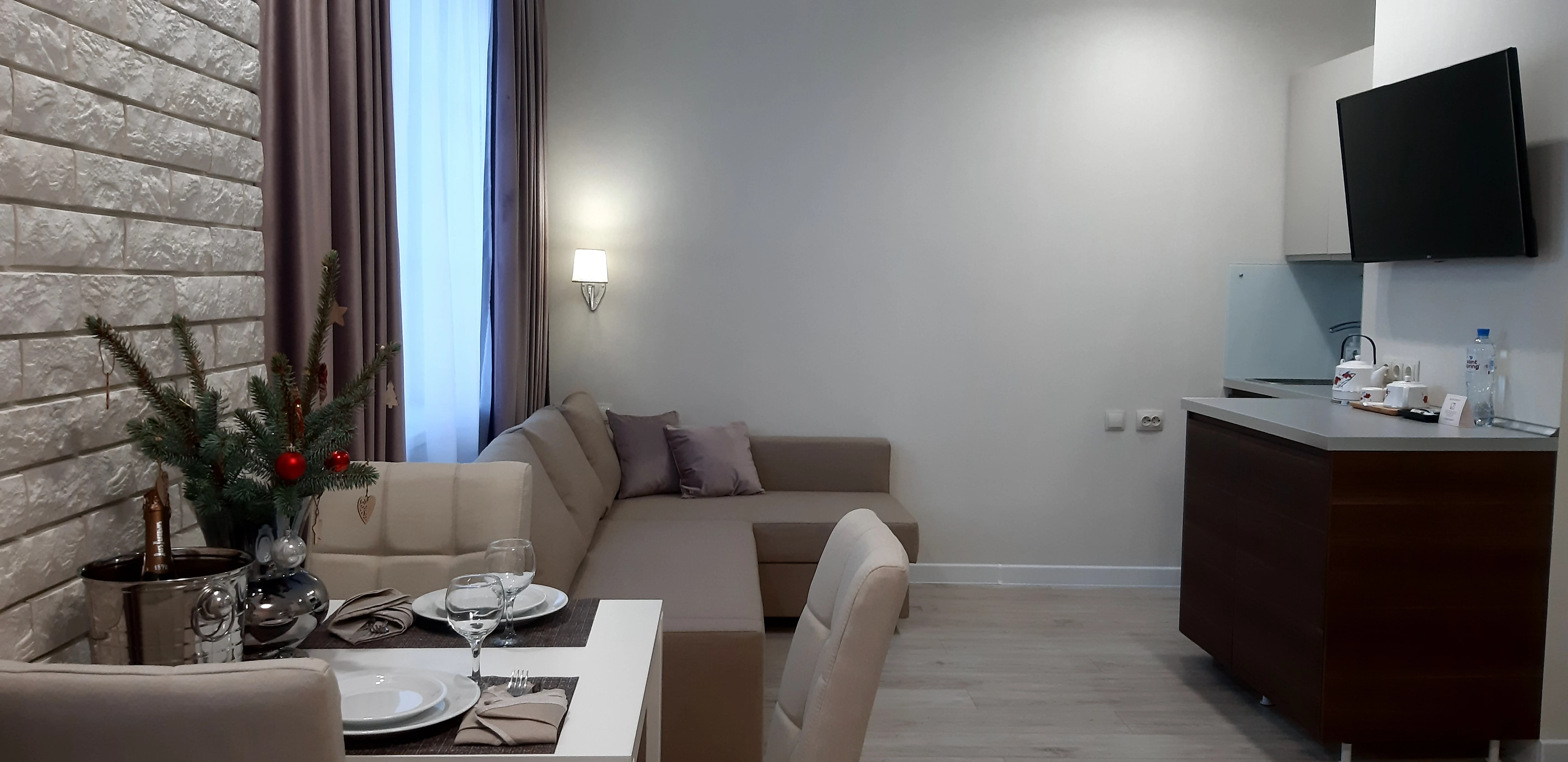 Добро пожаловать в нашу студию-люкс на втором этаже! Здесь вы найдете все, что нужно для уютного пребывания в нашем гостевом доме. При входе в студию вы сразу почувствуете ее простор и элегантность. Комфорт и удобство включают в себя двуспальную кровать, а так же удобный диван, который может служить дополнительным спальным местом или местом для отдыха в течение дня. В студии также оборудована зона отдыха с уютными креслами, где вы можете расслабиться. Телевизор smart , кондиционер и бесплатный Wi-Fi. На кухне вы найдете все необходимое. Она оснащена плитой, холодильником, посудомоечной машиной, микроволновой печью, чайником и посудой. Вы можете приготовить себе утренний кофе или завтрак.